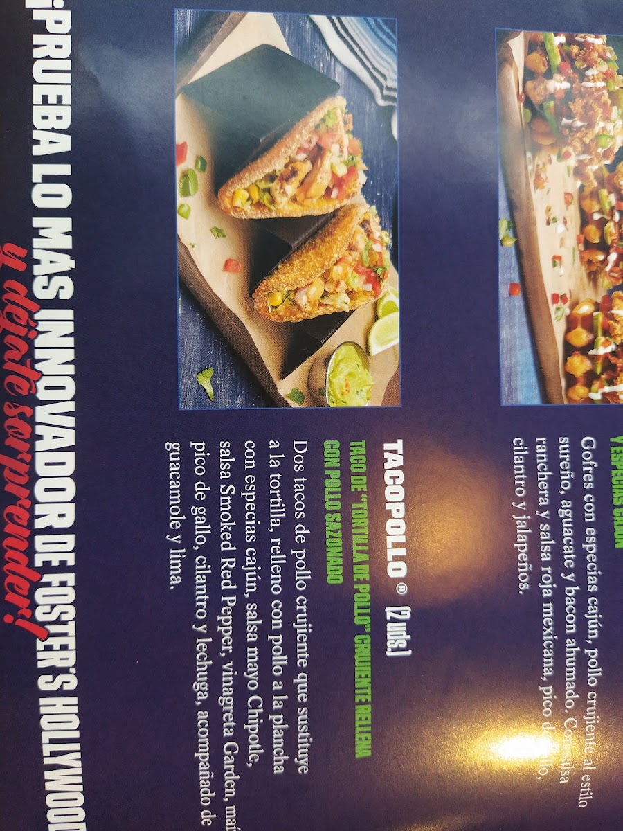 Foster's Hollywood Menu